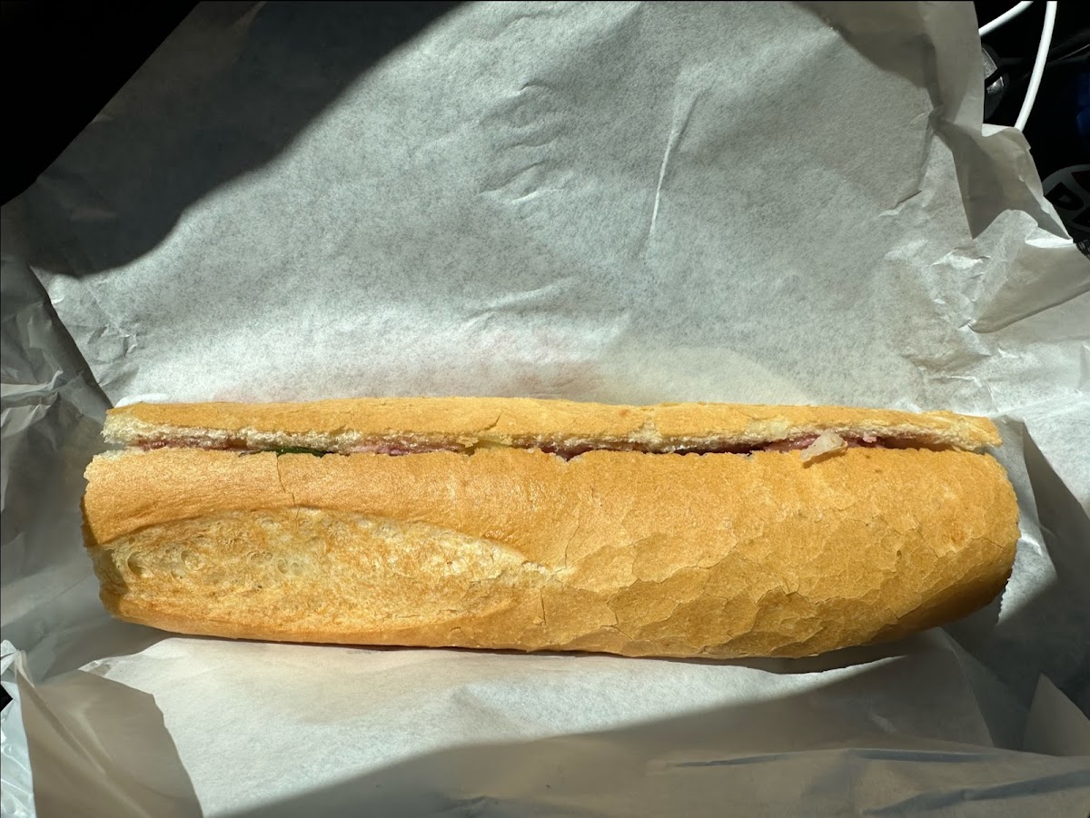 Came to this Vietnamese sandwich shop that was recommended from a Vietnamese friend and he was absolutely right. This place is the real deal and the sandwiches are fresh and most importantly they put pate on some of the sandwiches which is definitely a must when it comes to Vietnamese “Bahn mi”…. I got two sandwiches and it was seven dollars each so I got out of there for about $16 including tip. I love the baguettes. I love the meat inside and I love the balance and texture and I will definitely be back so thank you thank you thank you and great job…:)